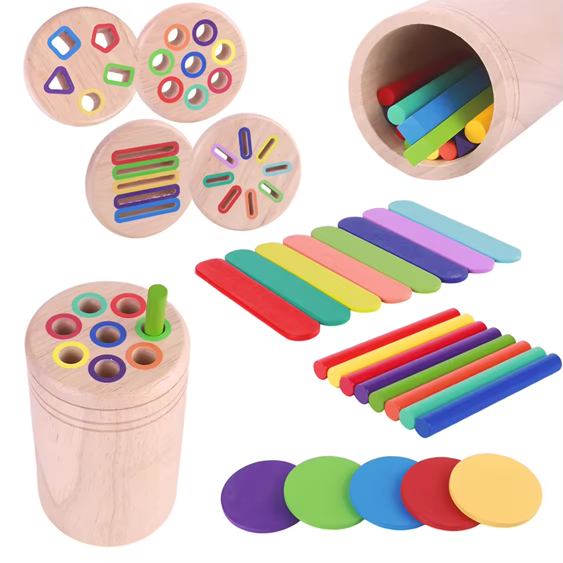 Baby Montessori Toys 4 in 1 Color Classification Cup Fine Motor Skills Preschool Activities Wooden Toy for Children